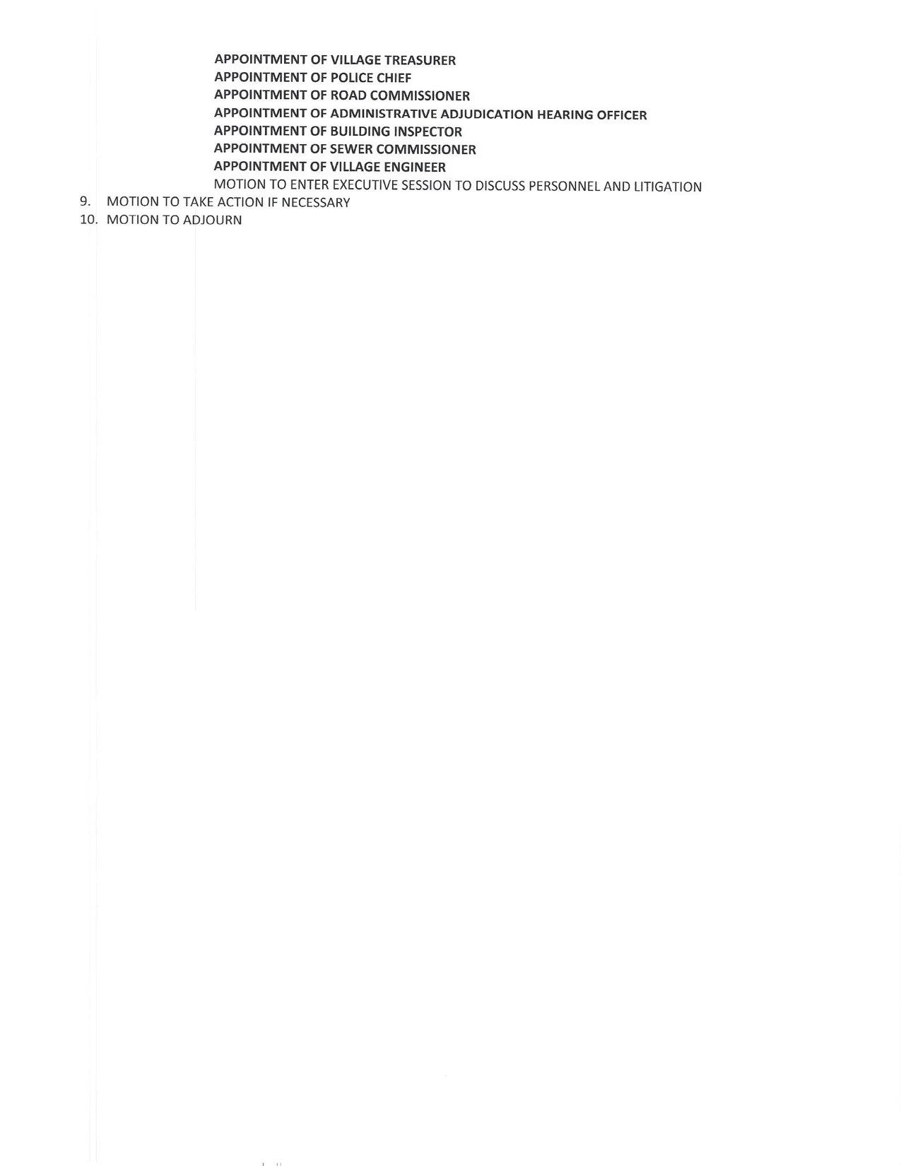 Village Board Meeting and Finance Committee Meeting on May 6, 2019 at the Grant Park Community Center.