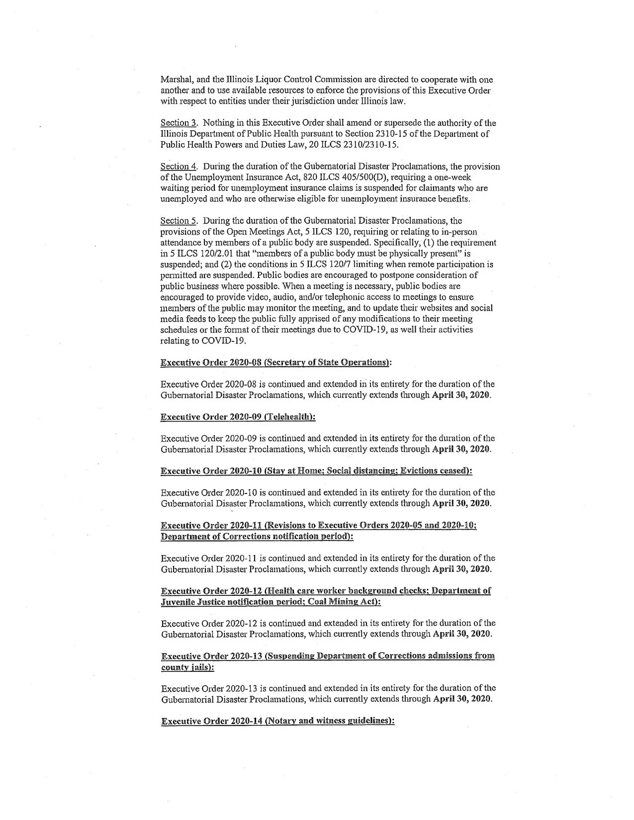 Governor Pritzker has extended prior executive orders until 4/30/20